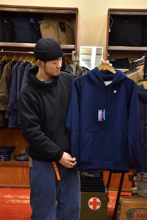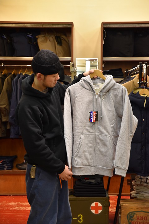Camber(キャンバー)のスウェットパーカー、G.H.BASS(ジーエイチ・バス)のローファー、INDERA MILLS (インデラミルズ)のサーマルT。