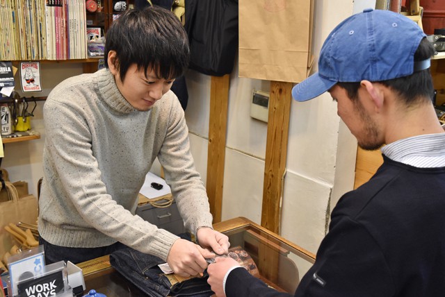 今月27日(土)からはいよいよリゾルトフェア! ZABOUでの開催はこれで7回目。初めての方も買い替えの方も、是非この機会にお越し頂ければと思います。 フェアの目玉はなんと言ってもデザイナー林さんのフィッティング! フィッティングデーは27日(土)と28日(日)の2日間のみ。ですので当日は混雑が予想されます。 少しでもスムーズにご案内するために、本日はご来場時の流れをご紹介していきたいと思います。是非ご覧ください。 ~~~~~~~~~~~~~~~~~~~~~~ リゾルトフェア当日... お客大井「こんにちは~。」 店員瀬川「いらっしゃいませ~。」 お客大井「今日からリゾルトフェアがあると聞いてきました!どこでやってるんですか?」 店員瀬川「ありがとうございます。本会場は上の階になりますが、まずこちらで受付させてもらいますね。」 ●その1 まずは2階の店頭にお越しくださいませ。林さんのフィッティング会場は3階ですが、こちらでまず受付を行います。 ※フィッティングのご予約や商品の取り置きなどは対応しかねます。ご了承ください。 店員瀬川「こちらで荷物と上着をお預かりしますね。」 お客大井「この番号札は何ですか?」 店員瀬川「こちらはお帰りの際に荷物と交換になりますのでお持ちくださいませ。」 お客大井「わかりました!」 ●その2 店頭でお荷物と上着をお預かりします。その際に番号札をお渡ししますので、失くさないようお持ちくださいませ。お帰りの際お荷物との交換になります。 お客大井「じゃあこっから上に行ったらいいんですかね?」 店員瀬川「その前に、まずこっちでジーパンを穿きましょう。およそのサイズはここで僕たちが見させて頂きます。」 お客大井「リゾルトって穿いたことないから分からないんですよね~。キツめのサイズがいいとは友達から聞いてますが...」 店員瀬川「お任せください。」 その3 まずは2階でZABOUスタッフがサイズを合わさせて頂きます。長さの好みや合わせ方などこの後是非林さんに聞いてみてくださいね。 店員瀬川「では向かいましょうか。袋をお渡ししますので今日穿いてきたパンツを入れてお持ちください。」 お客大井「おお~。いよいよですね。」 店員瀬川「はい。ご案内しますね。」 その4 サイズを合わせたらいざ3階へ。この際、袋をお渡ししますので穿いてこられたパンツを入れてお持ちください。お荷物と上着は引き続き2階でお預かりしておきます。 店員谷川「いらっしゃいませ~!」 店員瀬川「こちらです。」 お客大井「こんなとこがあったんですね。あ、奥に林さんいてはる。」 店員瀬川「別のお客様のフィッティング中ですね。会話など聞いていても面白いですよ。ここで少しお待ちください。」 店員谷川「それでは、お客様のお名前をお伺いしてもよろしいでしょうか。順番にご案内致します。」 お客大井「大井です。盛り上がってますね~。」 その5 下でパンツを穿いた方から順にご案内しております。別のスタッフがお名前をお伺いしますので、順番が来たらお呼び致します。 ●その6 リゾルトフェアの目玉!林さんによるフィッティングです。サイズ変更の際はこの3階で着替えていただきます。ウエストの伸びが心配な方のために、穿き込まれたUSEDサンプルもご用意していますので是非お試しください。 お客大井「ふ~。無事に決まった~。着替えはどこでしたらいいですか?」 店員谷川「着替えはここでしてください。その後はジーパンにサインしてもらったり、林さんと記念写真を撮れますがいかがですか?」 お客大井「おお!是非お願いします!」 その7 サイズが決まりましたら元々穿いてこられたパンツに着替えてくださいませ。その後はジーパンのスレキ部分にサイン、一緒に写真をお撮り頂けます。 店員谷川「お買い上げありがとうございます。お会計は下になりますのでご案内しますね。」 お客大井「あ、荷物も預かってもらってますもんね。お願いします。」 その8 お会計は2階で行いますので下にご案内致します。 店員瀬川「お買い上げ頂いたお客様にはノベルティがございます。是非どうぞ。」 お客大井「嬉しいっす。ありがとうございます!」 その9 ご購入頂きましたお客様にはノベルティを差し上げております。今回はステッカー、クリアファイル、そして写真にはありませんがバンダナもご用意しています。バンダナとクリアファイルはどちらかのお渡しです。詳しくは後日のザボブロで。 ※購入された方のみのお渡しとなります。数には限りがございますのでご了承ください。 お客大井「あ、これ番号札です。」 店員瀬川「頂戴します。ではこちら上着と荷物です。フィッティングはいかがでしたか?」 お客大井「楽しかったです!林さんに見てもらえていい体験できました。育てていくのも楽しみです。ガンガン穿くぞ~。」 店員瀬川「ガンガン穿いてガンガン洗ってください。メンテナンス等お困りでしたら何でも聞いてくださいね。本日はどうもありがとうございました。」 その10 最後にお会計、そしてお預