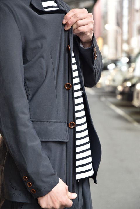 トラディショナルなディテールを踏まえ、作られたジャケットだから品よく映ります。