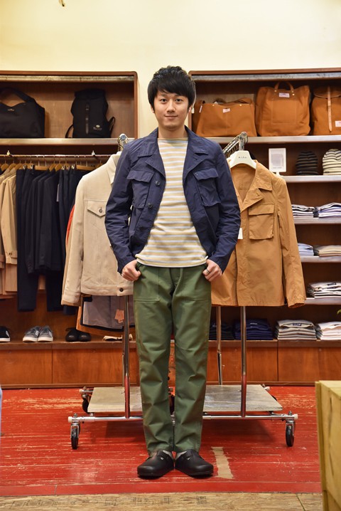 ここで選ぶのはレギュラーではなくスリムフィット(近日再入荷予定です!)。上下合わせてミリタリー色がちょっと強くなるかと思いきや、シュッと細みでまとめるといい感じになりますよ。先日のZABOU styleでもほぼ同じコーディネートをご紹介しましたが、それだけお気に入りということです(笑)。是非お試しあれ。