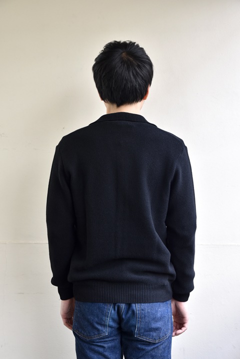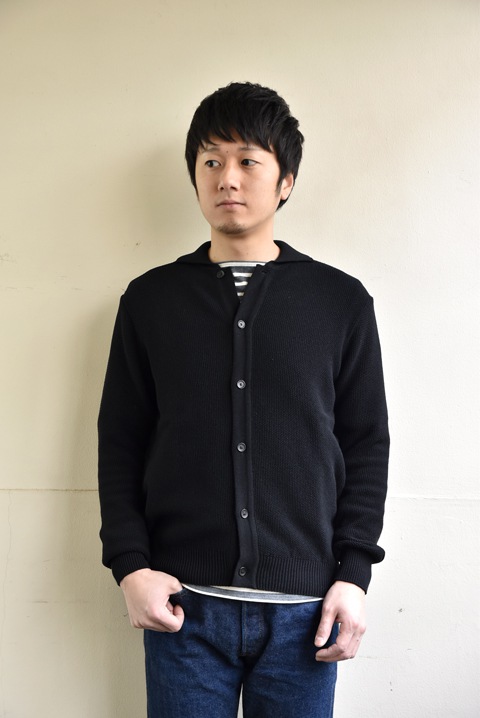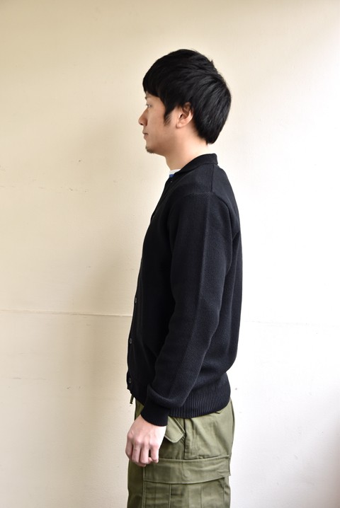 よく見ると、襟付きです。ポロカーディガンみたいな感じですね。