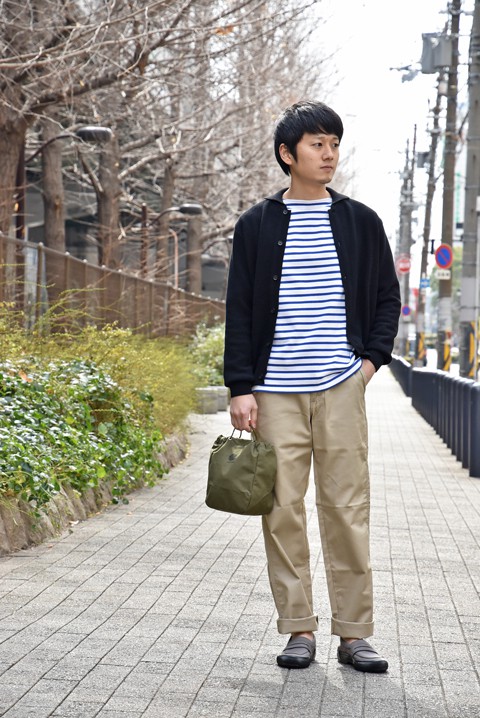 特に、春にアウターとしてセントジェームスに合わせて着るのが好み。