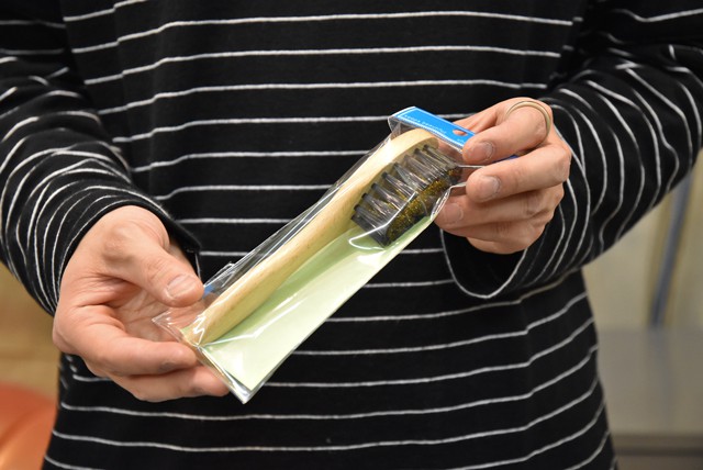 丸く円を描くようにこすってあげてください。洗剤の泡立ちは軽く泡立つくらいで丁度良いです。泡立ちが少ない場合は、ブラシの先端に水をつけて繰り返してくださいませ。