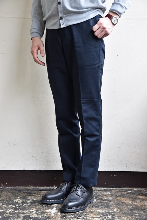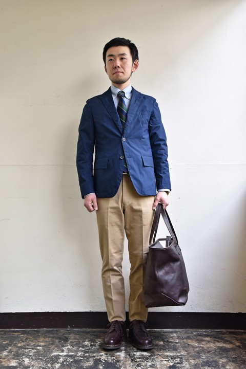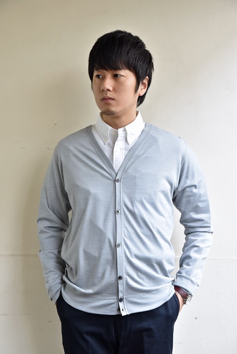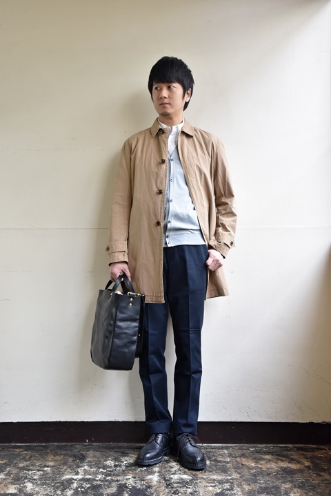 ノータイな職場や場面なら、トップスにカーディガンという選択肢もいいのでは。通年着れる素材なので外でも中でもいい感じ。パンツは同じくチノトラウザーで。普段着にも気兼ねなく使いたい...という方には是非おすすめですね。