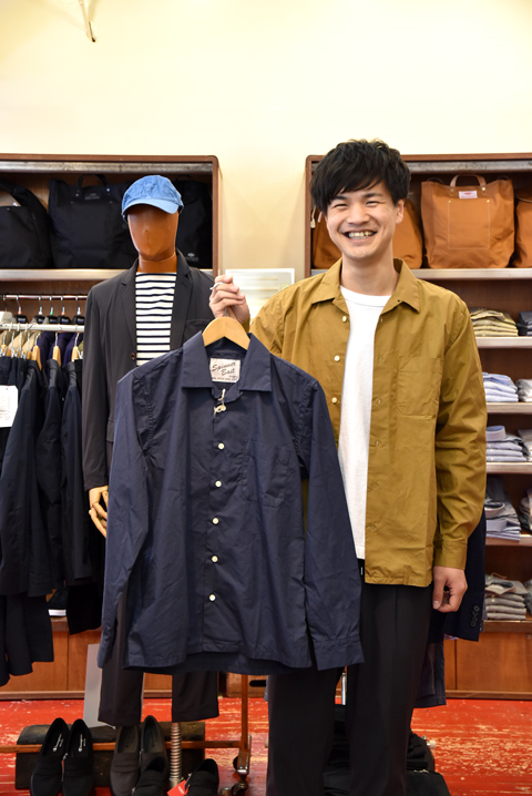 シャツだけど生地にハリとコシがあって、きれいなボックスシルエットが保たれているので、ジャケット感覚でも着れる優秀なアイテムです。キャメルとネイビーでご用意致しております。
