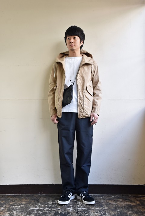 スポーツやアウトドアブランドばかりではございませんよ。ファッションブランドが作るそれもまた良い感じで、ナウンの定番スピンドルパンツも今季はしっかりスポーティー。コットンライクなナイロン素材でサラッと穿けるおすすめパンツです。 スポーティーなパンツにはラフなトップスでお楽しみくださいませ。