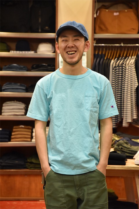MADE IN USAコレクションの「T1011」 無地ポケ、シーズンカラーです。ご満悦。