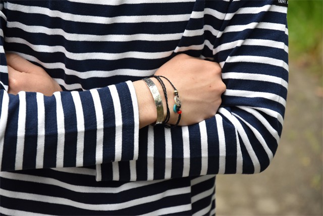 どーも、どーも。大井勇人です。 4月も後半、東京出店ももうすぐでございます。 僕の関西弁が標準語になるんぢゃないかと心配しております。 夏頃には染まってたりして。。ちなみに周りには染まると言われております(笑) はい、本題。 日中はウエッソン一枚でも心地いい季節になってきましたよね。 ZABOU定番アイテムでもあるSaint James(セントジェームス)ウエッソン。 漁師や船乗りたちのワークウェアであったバスクシャツは、袖先が水に濡れないよう・仕事中邪魔にならないよう、やや短めの9分丈くらいになっています。 それでこれが上手い具合にアクセサリーと好相性◎ バングルやブレスレットといった腕回りのアクセサリーが見えるわけです。 ●右手 NORTH WORKS(ノースワークス) MORGAN DOLLAR HAMMER BANGLE  ¥25,920 NORTH WORKS(ノースワークス) A-STAR ZABOU SP ネイビー  ¥7,344 ●左手 NORTH WORKS(ノースワークス)900silver bangle S  ¥12,960 シンプルに一枚で着るからこそ、お気に入りのアクセサリーを身に付けたコーディネイトでお楽しみたいですね! どうぞ皆さまもアクセサリーを取り入れたスタイルでお楽しみくださいませ。 明日のご来店もお待ちしております! ☆実店舗へのご案内、お店までへの行き方を地図や動画でご紹介! ⇒ZABOUのお店 ☆通販で購入、商品詳細など詳しく見る! ⇒ZABOU WEB SHOP(ウェブショップ) 通販サイト ●新着商品・再入荷商品などのお知らせ、その他情報満載! ⇒【ZABOU facebook(フェイスブック)】 ●おすすめ商品やザボスタが見たい! ⇒【ZABOU Instagram(インスタグラム)】
