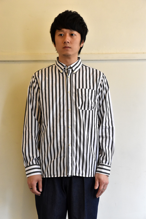 ●weac.(ウィーク)'18秋冬 BASIC SHIRTS カラー:NAVY BIG STRIPE、BLACK BIG STRIPE、NAVY GIZA ¥16,200-