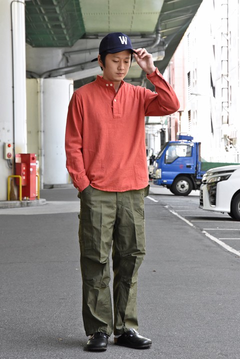 ミリタリーと今の空気含んだプルオーバーシャツ。秋からの季節感を出す一枚としてピッタリです。
