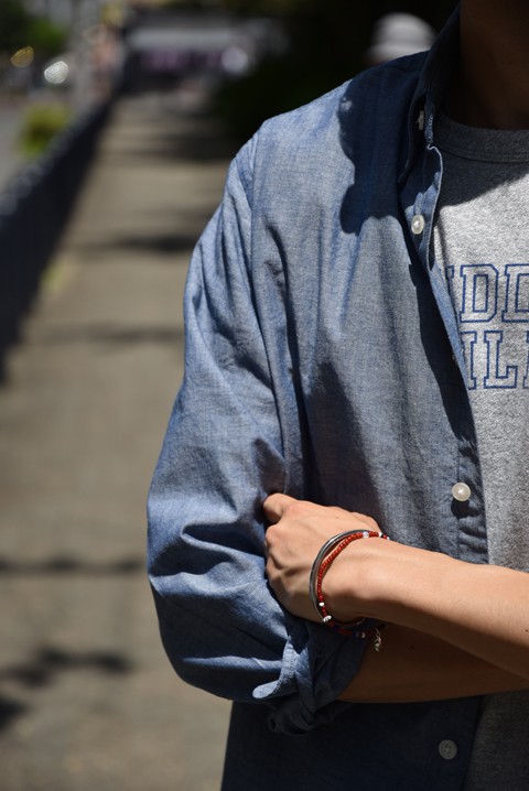 シルバーアクセサリーとビーズブレスレットの重ね付けもおすすめ。