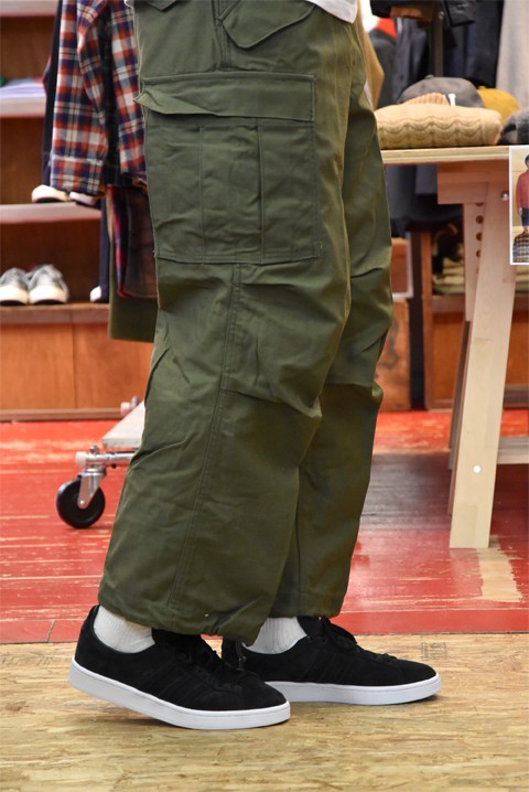 最近まで軍物なんて全く興味無かったんですけど 瀬川さんがよくこんな感じで着こなしてるのを見ていて、『カッコええな、、』と(笑) もちろん、デッドストックというだけあって状態も良いですし、作りもしっかりしております。 黒のスニーカーに白ソックスで合わせるこの感じ、オススメです。