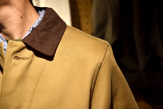 ハンティングジャケットのような、ステンカラーコート。私加茂は古着小僧だったこともあって、1950年代のハンティングジャケットを愛用していたのですが、本当に着回ししやすいんです。
