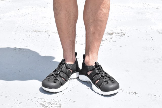 抜群の安定性を誇るキーンのサンダル。防水レザーで雨もへっちゃら。とにかく履きやすいので、一足あればとても便利です。
