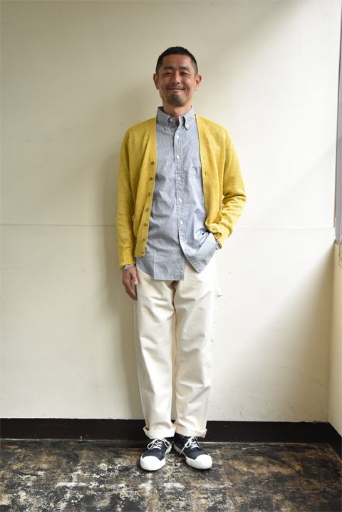 さて、いよいよ取りを務めますのは「Linen Cardigan(リネンカーディガン)」でございます。地味ながらもその存在感は大きく、欠かす事の出来ないアイテムではないでしょうか。たかがカーディガンされどカーディガンでございます。便利なアイテムとして1,2を争う勢いでございます。一度便利さを知ってしまうとジャケットが億劫に思ってしまうほどの魅力でございます。ソフトでしなやかなリネンのニットは、編み立ても良く上品なお仕立てでございます。まるで良家に生まれた三つ編みが良く似合う女性のように貴方を虜にしてしまうでしょう。