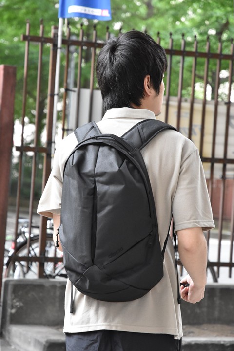 バッグも気付くと濡れているなんてことが多い。雨に強い素材を使いたいのはもちろんですが、ブラックカラーで都会的に見せるとコーディネート全体が締まっていい感じ。