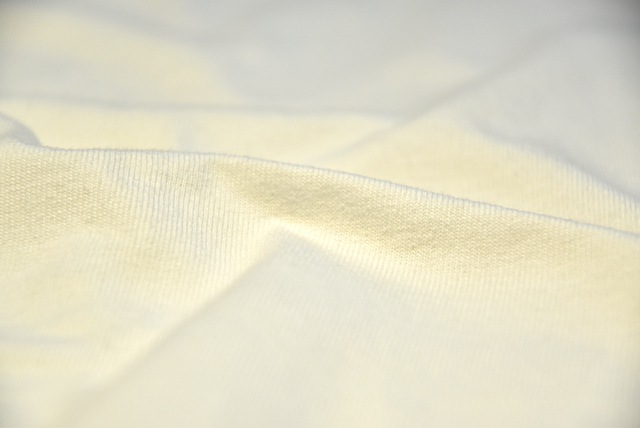 素材調達・糸の選定・縫製等、全行程をアメリカで行い、US製へのこだわりを受け継いだ、USコットンのドライタッチな感触や肌触りが最大の特徴。言わば完全アメリカ製。