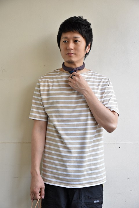 ●Saint James(セントジェームス) PIRIAC(ピリアック) 半袖Tシャツ SABLE/NEIGE(ベージュ×白) ベージュカラーのトップスが今年は気分だな~なんて思っていたら、夏の定番、セントジェームスのピリアックでもしっかり作っておりました。ニクイですね~。 ウェッソンに比べて薄手でさらりとしています。毎年新色が出るから何枚あっても欲しくなる。フランス製ながら手頃なプライスも◎ その時の気分によってサイズ選びを変えやすいのもTシャツのいいところです。