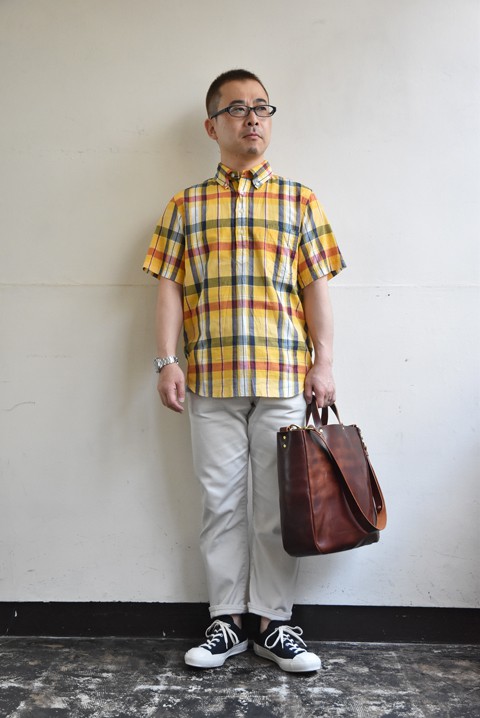 ●SERO(セロ) ボタンダウン半袖シャツ マドラスチェック イエロー/グリーン ザボウのアイビー・プレッピースタイルを目指す私としては、はずす事のできないボタンダウンシャツ。オックスフォード、シアサッカー地等ございますが、その中でも色目が鮮やかなマドラスチェックをチョイスしました。