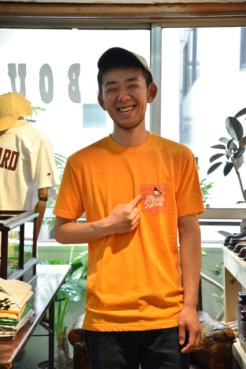●PIDGIN ORANGE(ピジンオレンジ) OriginalMuchoAloha PocketTee MuchoAloha! ムーチョアロハ! めっちゃアロハ! 今年の夏はコレで決まりでしょ。 去年の夏に初めて訪れた、アメリカの現地でしか味わえない空気。その魅力にヤラレテしまいました。 どうぞ皆さまもこの夏は「Mucho Aloha」してくださいませ~!