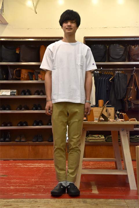久々にチノパンを買いました。なぜかと言うと、通勤途中の道ですれ違った外人さんが白Tにチノパンと言うスタイルで、すこぶるカッコ良かったからです。(笑)バーンストーマーのチノパンはスラックス仕立てなのでTシャツ一枚でもラフになり過ぎないところが気に入っています。