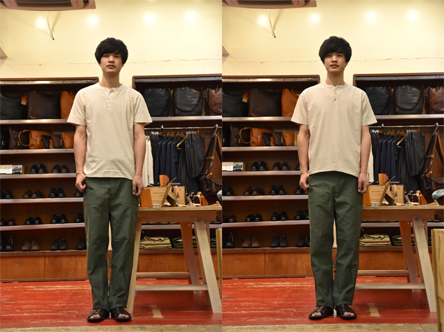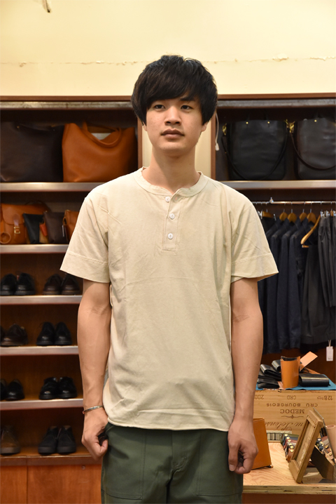 様々なコーディネートで活躍してくれるヘンリーネックの定番的一枚、是非お楽しみくださいませ。