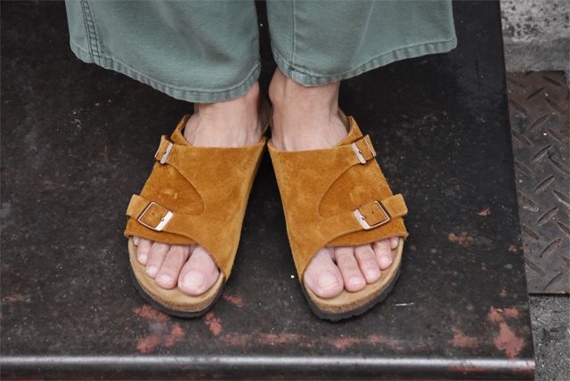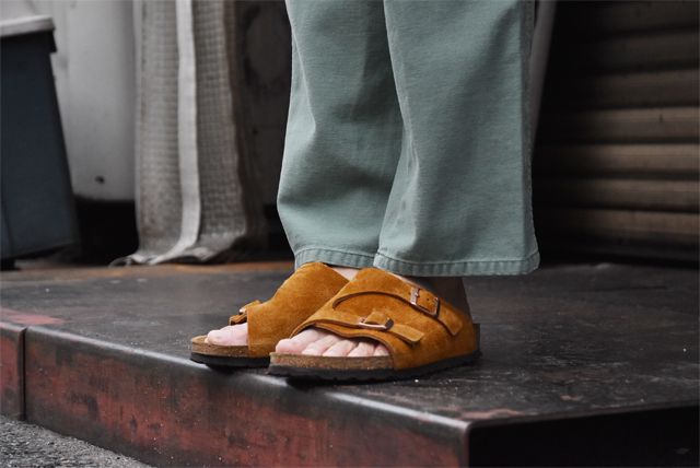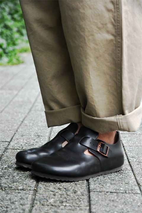 久しぶりにBIRKENSTOCKがええんちゃうかなと思っている次第でございます。と申しますのも、ワタクシ甲高幅広の足だからでございます。長大巨根ゆえに致し方ないとは存じますが、たいがいはキツくて長時間だと痛いと申されます。足が。(笑) アホなことは置いといて、やっぱりBIRKENSTOCKは楽チンでカッコ良いのではないでしょうか。このぽってり感に多少の好き嫌いがあるとは思いますが、パンツの丈さえ誤らなければすっきり綺麗にお召しいただけますよ。