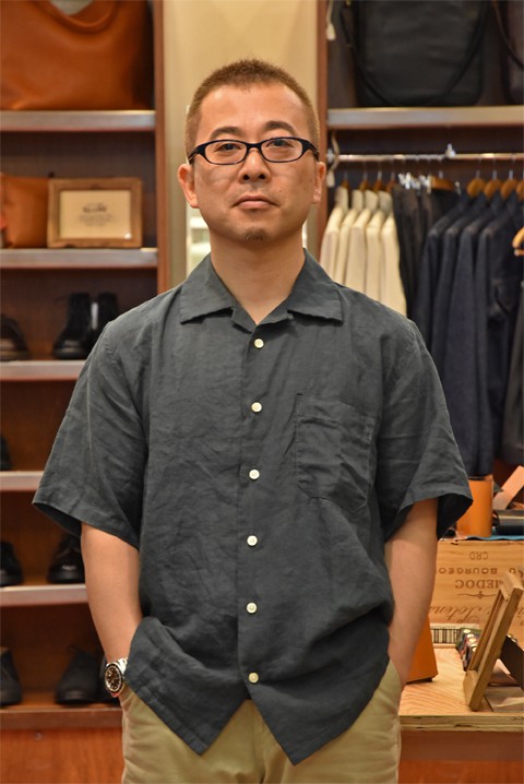 先日のブログでご紹介させていただきましたリネンシャツです。リネン素材の特性で吸水発散性が優れているのでサラサラ快適に着用しております。ムラ感のある生地もお気に入りです。