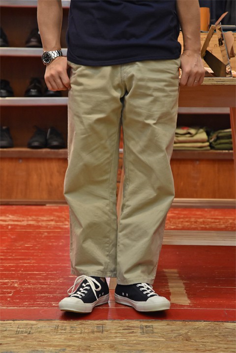 私の中では、久しぶりの少し太めのチノパンです。体型的にもあまりにも太すぎるのは・・・いかがなものかと思っておりましたら、ありましたよ丁度ええ塩梅の太さが。テーパードは無くまっすぐストレートシルエットです。青春時代のボンタンならぬ土管シルエットですかね(笑)