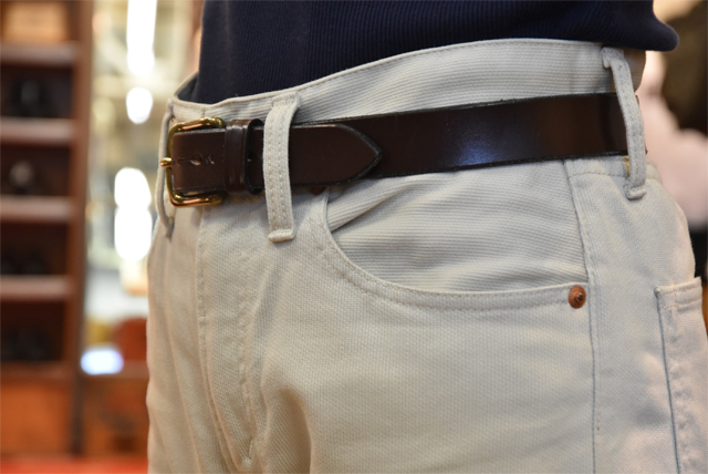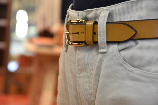 ドレス過ぎずカジュアル過ぎないベルトを探しておりましたら、こちらのレザーベルトがZABOUにございました。馬具用のブライドルレザーを使用しとても厚く頑丈です。しかし、使えば使うほどに体のラインに沿ってカーブができてくると、あら不思議手放せなくなるほどの装着感!!合わせるパンツはデニムからチノパン、ピケジーンズetc。私、個人的にはいずれもやや細身のパンツと相性がよろしいかと思います。これからも永い付き合いになりそうです。