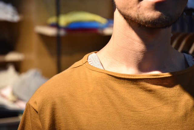 一度着てみればハマるゆったりシルエットのTシャツは、肌に触れる面積が少ないので風通しも良く、汗をかいてのベタ付きも軽減。