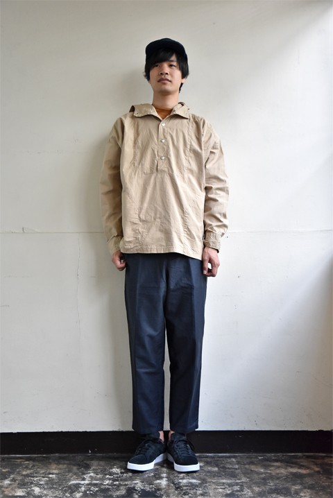 デッドストックのフランス軍のパンツが破格のお値段。。これは買わない手はないでしょう!ということでこちらを使ってコーディネート。ミリタリー物らしからぬシルエットと、デッドストックならではなガシっとした生地感がお気に入り。