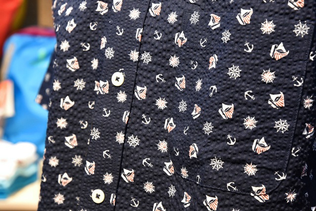 凸凹としていて肌に触れる面積が少なく、サラりと着れる素材シアサッカー。
