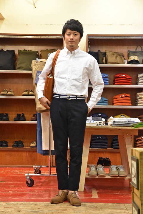 基本はやっぱり、シャツに革靴でしょう。季節が進めば上にジャケットを。