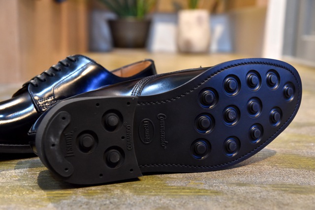 コマンドソールは、レザーソールに比べグリップ性・耐水性にも優れており、雨の日でも滑らずに安心して履く事ができます。