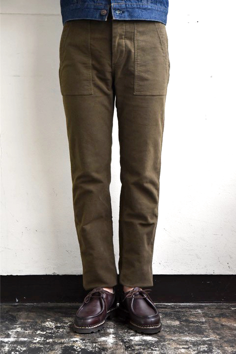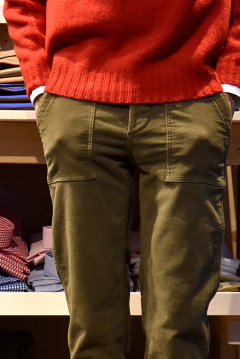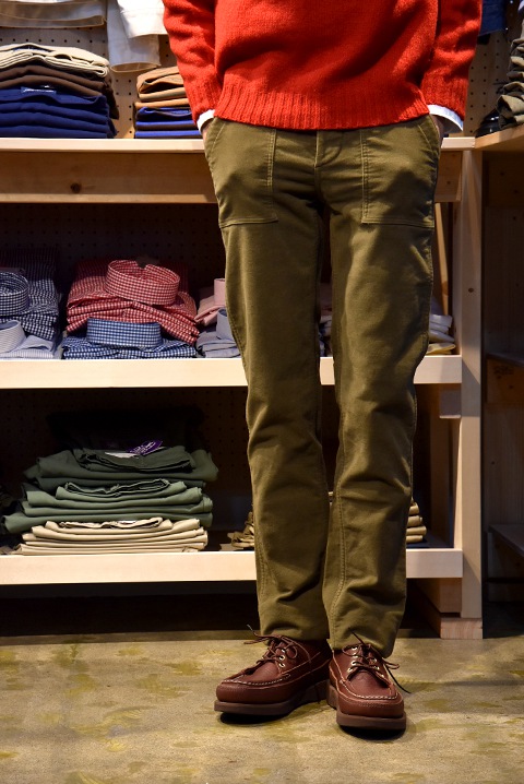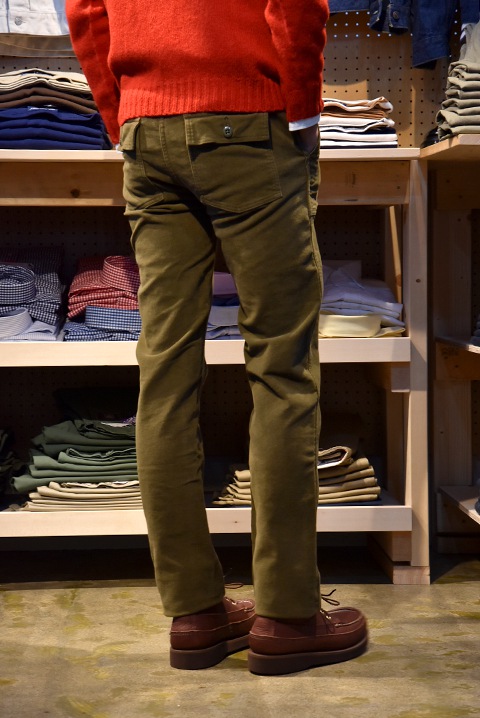 秋冬のパンツと言えばコーデュロイやウール素材のパンツを穿いている方が多いと思いますが、モールスキンも雰囲気が良くとってもオススメ。