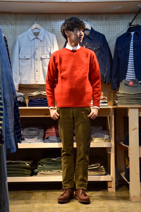 もう少し季節が進めば、シャツにシェットランドセーターを重ねて、こんな感じで合わせたいですね~。