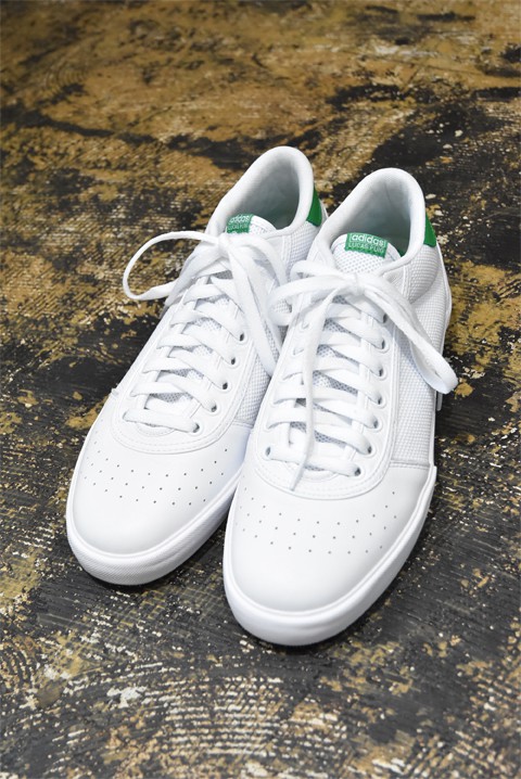 一見、テニスシューズを思わせる爽やかな、ホワイト×グリーンの配色ですが、こちらはアディダスのスケートボーディングコレクションからの一足。