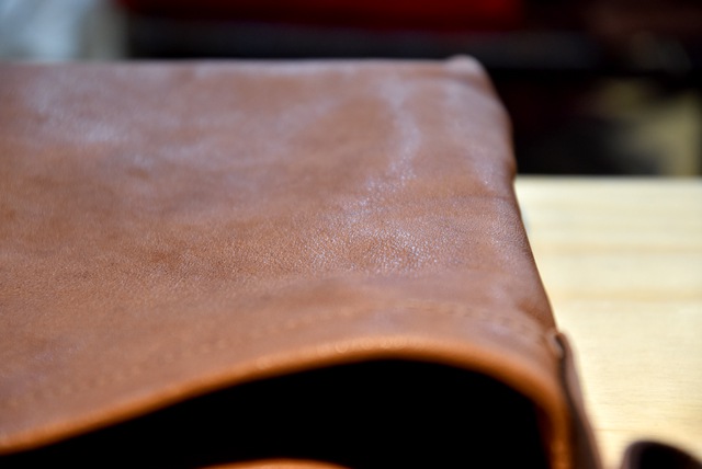 このシリーズで使用しているレザーは得意の栃木レザー社で鞣しを施されたレザーなのですが、最大の特徴は原皮自体も希少な日本産のキメの細やかな牛革だということ。