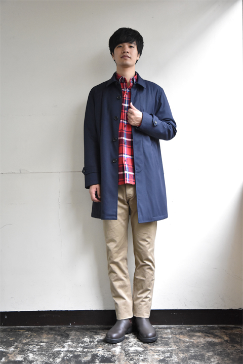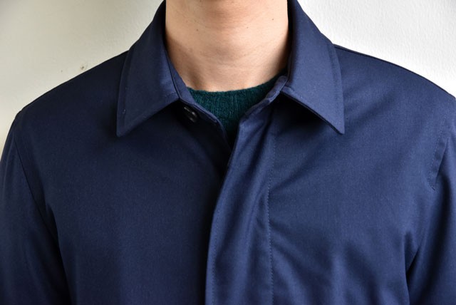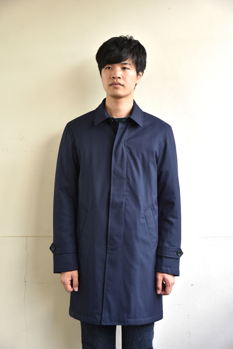 ステンカラーコートでございます。コチラはネイビー1色展開。