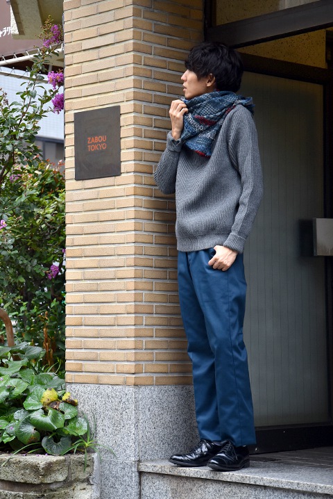 ワークパンツに革靴、アンデルセンのニットとも好相性です。