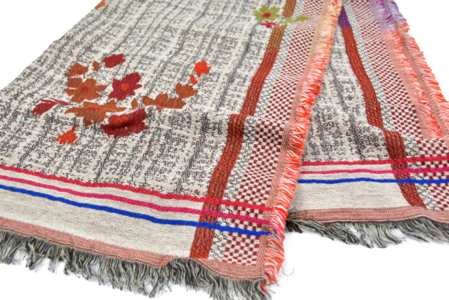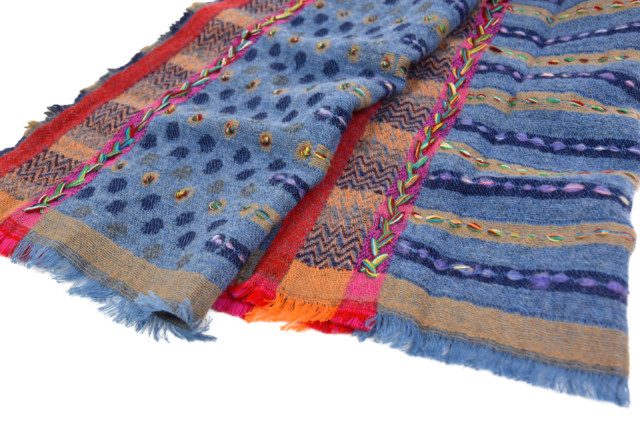 個人的にも懐かしさとともに、どうやってコーディネートに取り入れるか、考えるのがワクワクするストールですね。良いなあコレ。