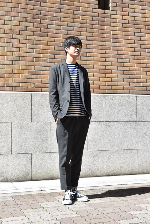 着用カラーはチャコール。ネイビーもございます。
