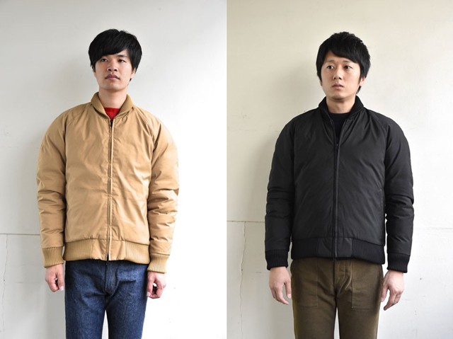 MA-1やスタジャンのようなショート丈のブルゾンタイプ。ラグランスリーブですので肩の収まりが良く、動きやすい。衿や裾、袖はリブ仕上げでスッキリとしたサイズバランスです。