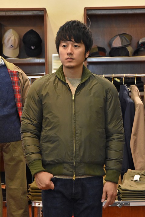 少しワークっぽさの漂うボンバージャケット。アメカジらしいコーディネートはもちろんですが、ウールのトラウザーにレザーシューズ、セーターなど品の良いアイテムと合わせてもよく合いおすすめです。