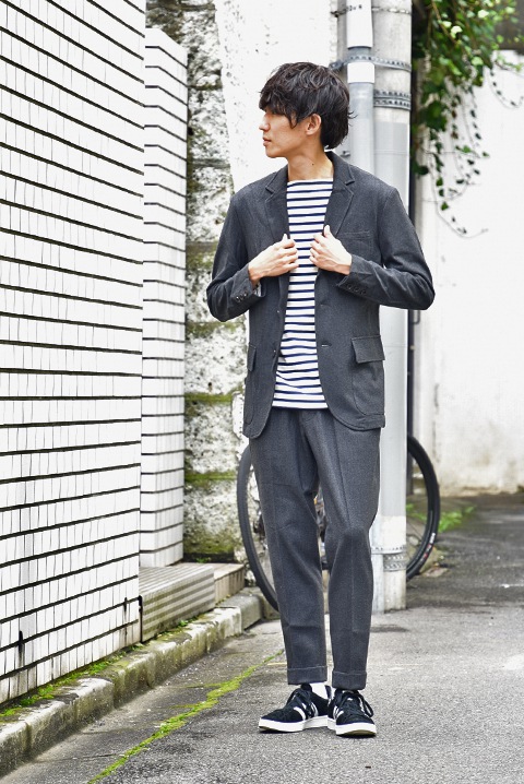 スタンダードなノッチドラペル。シャツでもカットソーでもオッケーです。