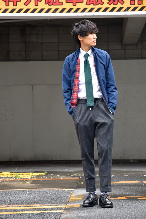 なんだかネクタイを締めたい気分だったので、イージーパンツながらタックイン。カタチと生地が良いので違和感なくおさまります。
