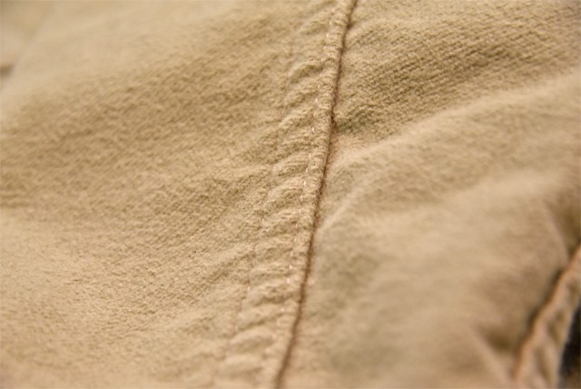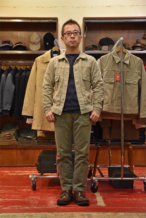 今回のジャケットは、モールスキンという生地を使用し(モールスキンは起毛させながら織り上げている生地で、肌触りも良く、空気層ができやすく保温性も高い生地です。)秋・冬の季節に適した風合いの良いジャケットになっています。