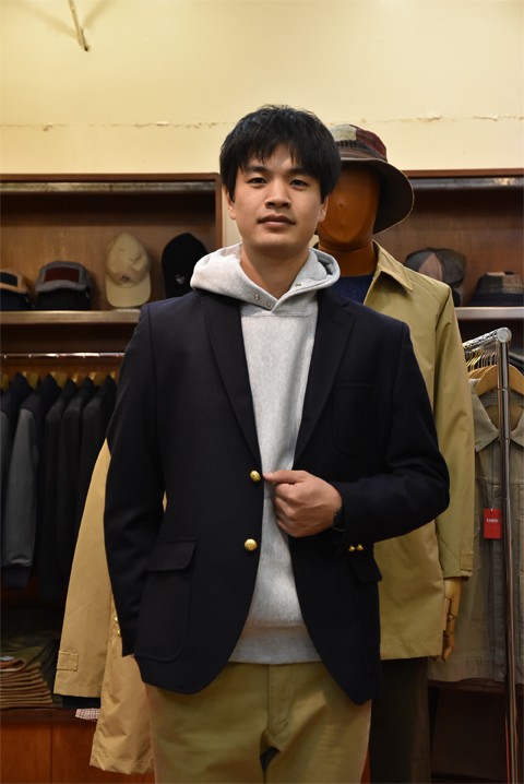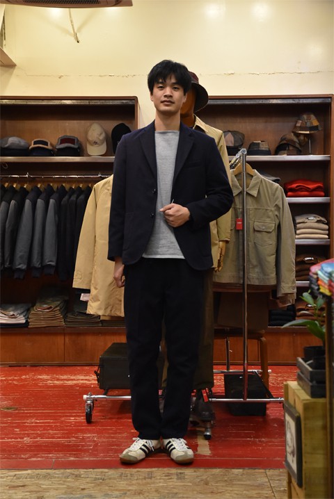 皆様こんにちは、本並です。 本日もおすすめブログお付き合いくださいませ。 今週もたくさん新着商品がございます。 まずはGB SPORTS(ジービースポーツ)からZABOU別注スタジャンです。 程よいアメカジらしさを残しつつ都会的な仕上がりに。大人のスタジャンとしてスタイルに取り入れて頂きやすいアイテムでございます。 GB SPORTS(ジービースポーツ)CLASSIC VARSITY JACKET ネイビー   ¥68,040- GB SPORTS(ジービースポーツ)CLASSIC VARSITY JACKET ブラック ¥68,040- こちらはH by FIGER(エイチバイフィガー)より、男の必需品『紺ブレ』でございます。 細やかなディテールほもちろんのこと、ウールフランネル100%、日本製です。 日本人の体型に合ったパターンでスマートに着て頂けます。 H by FIGER(エイチバイフィガー) メタルボタン IVYブレザー  ¥42,984- 紺ブレにシャツにネクタイを締めてビシッとキメて頂くのは勿論、パーカなどでカジュアルに着こなしても良いのではないでしょうか。 ●ジャケット H by FIGER(エイチバイフィガー)  サイズ:xL  ¥42,984- ●パーカー Champion(チャンピオン)  サイズ:XL  ¥18,144- ●パンツ BARNSTORMER(バーンストーマー)   サイズ:L  ¥15,984‐ ●シューズ 私物 身長約185cm 体重約72kg 足約29cm ブレザーつながりでもう一つ。 こちらはお馴染みのN.O.UN(ナウン)のアイテムでございます。 ポリエステル100%のぎっしり目の詰まったメルトン素材。 N.O.UN(ナウン)BLASER チャコール  ¥30,240- N.O.UN(ナウン)BLASER ネイビー  ¥30,240- 同素材のブランドの定番スピンドルパンツもございます。 紐でしばって頂くイージーパンツ仕様。 セットアップでのコーディネートもオススメでございます。 ●ジャケット N.O.UN(ナウン)  サイズ:L  ¥30,240- ●カットソー Saint James(セントジェームス)  サイズ:T6  ¥10,800- ●パンツ N.O.UN(ナウン)   サイズ:2  ¥17,280‐ ●シューズ 私物 身長約185cm 体重約72kg 足約29cm 今着たい、Saint James(セントジェームス)ウエッソンの新色も。 オリーブとマリンという絶妙な配色です。 Saint James(セントジェームス)ウエッソン「ガシガシ」 LICHEN/MARINE(オリーブ/マリン)  ¥10,800- 単色は秋らしいブラウン系。 Saint James(セントジェームス) ウエッソン「ガシガシ」 SIENNE(オーク)  ¥10,800- ここからは再入荷情報!! まずは、大変お待たせしておりましたBARNSTORMER(バーンストーマー) ノータックチノパンツでございます。 最近知名度がうなぎ上りのBARNSTORMER(バーンストーマー)。カーキとネイビー2色の展開です。 在庫の減りも早いことが予想されますのでお早目に! BARNSTORMER(バーンストーマー) ノータックチノパンツ  ¥15,984- これからの季節に活躍間違いなしのインナーも入荷しております。 程よく身体にフィットするシルエット、ワッフル地が保温性を高めてくれます。グレー、ナチュラルの2色展開。 INDERA MILLS (インデラミルズ) 長袖サーマルTシャツ  ¥2,052- お馴染みのヘルメットバッグも入荷しております。 主張しないシンプルさ、丈夫なナイロン素材でお手頃価格。 隠れた人気商品でございます。オリーブとブラックの2色展開です。 ストラップは取り外し可能。ショルダーバッグとしてもお使い頂けます。 USタイプヘルメットバッグ  ¥5,184- まだまだ新しい商品が入荷して参りますので、次も楽しみにしておいてくださいませ~。 では、ご覧頂きありがとうございました。   ☆実店舗へのご案内、お店までへの行き方を地図や動画でご紹介! ⇒ZABOUのお店 ☆通販で購入、商品詳細など詳しく見る! ⇒ZABOU WEB SHOP(ウェブショップ) 通販サイト ●おすすめ商品やザボスタが見たい! ⇒【ZABOU Instagram(インスタグラム)】