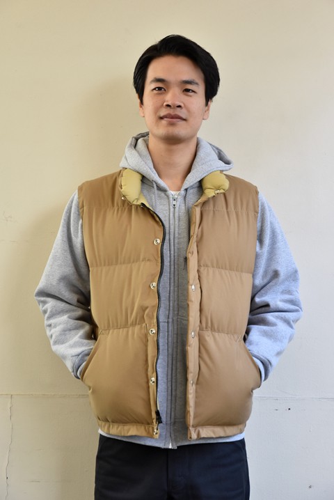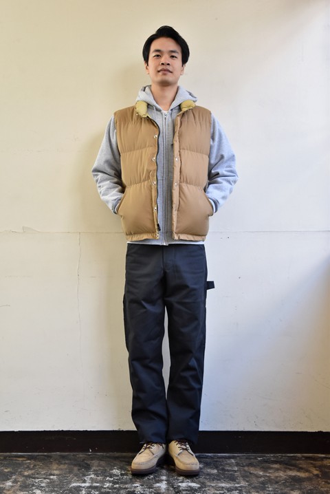 頭の先からつま先まで『MADE IN U.S.A』のアイテムでコーディネートしました。 シュッとした感じも良いですが、アメカジらしい気取らないラフなコーディネートもいかがでしょうか! ●ベスト Crescent Down Works(クレセントダウンワークス)  サイズ:M  ¥43,200- ●パーカー Camber Ⅱ(キャンバー・ツー)  サイズ:M  ¥10,800- ●パンツ Stan Ray(スタンレイ)   サイズ:30  ¥7,992‐ ●シューズ RussellMoccasin(ラッセルモカシン)  サイズ:US11  ¥54,000- 身長185cm 体重72kg 足約29cm